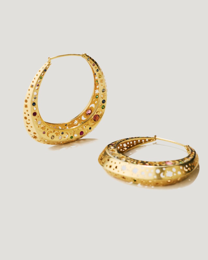 SA Hoops Large with Precious Colour Stones